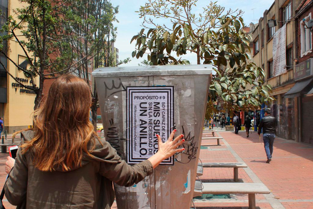 Hace más de un mes me reuní con La Jaxx con el fin de planear una intervención artística que decorara las paredes de Bogotá, aprovechando su expertisse como artista urbana, pero que además generara transformaciones en la vida de las mujeres. Discutimos varias horas sobre el propósito del ejercicio, posibles aliados, tiempos, recursos, objetivos y método. Nuestro referente de trabajo fue su intervención de “Los Nuevos Mandamientos de la Mujer” que realizó en la Ciudad de Panamá. De este ejercicio resultó una propuesta que presentamos a la Secretaría de la Mujer pero que no pasó de un par de reuniones, hecho predecible proviniendo de un sector que en el Distrito recibe un presupuesto mínimo, por no decir casi inexistente.