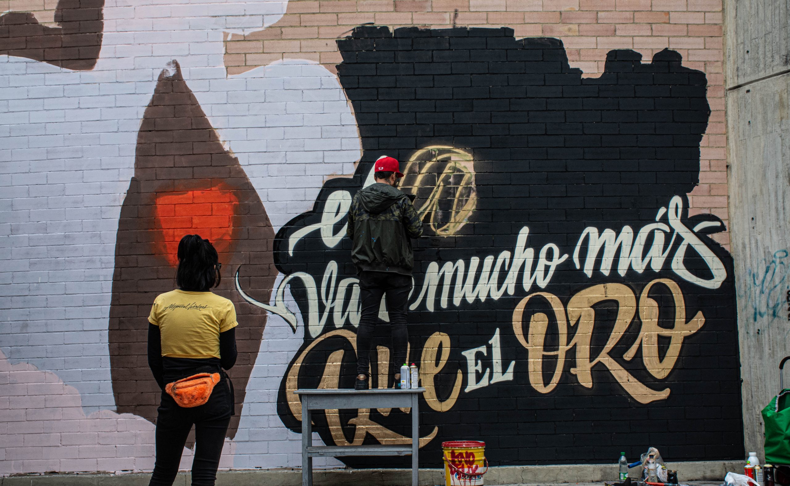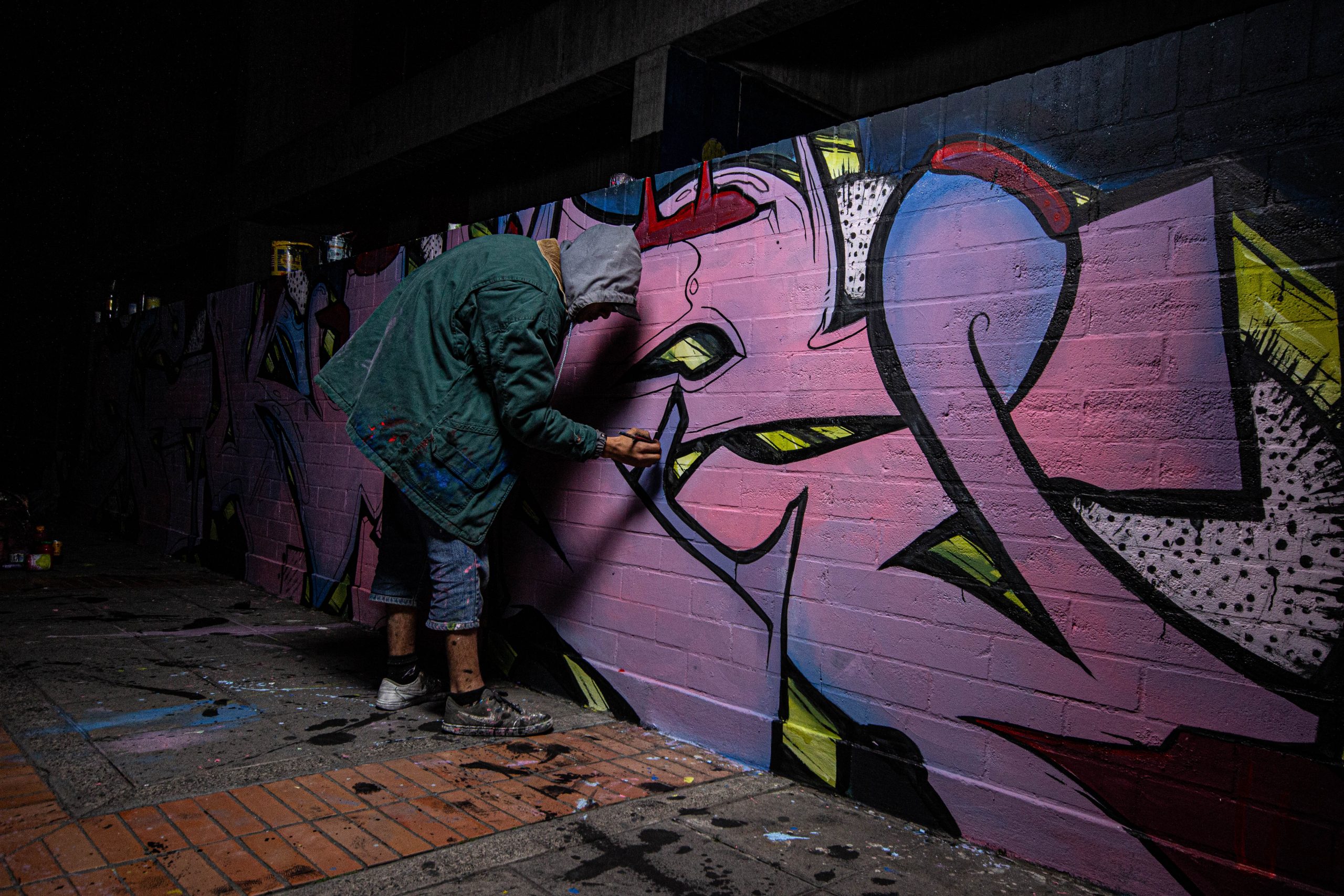 Esta primera pintada entre el 19 y 21 de febrero fue amenizada con música, sancocho comunitario y la magia de colores, mientras se intercambiaban conceptos y contextos de cada una de las piezas construidas en esta exposición.